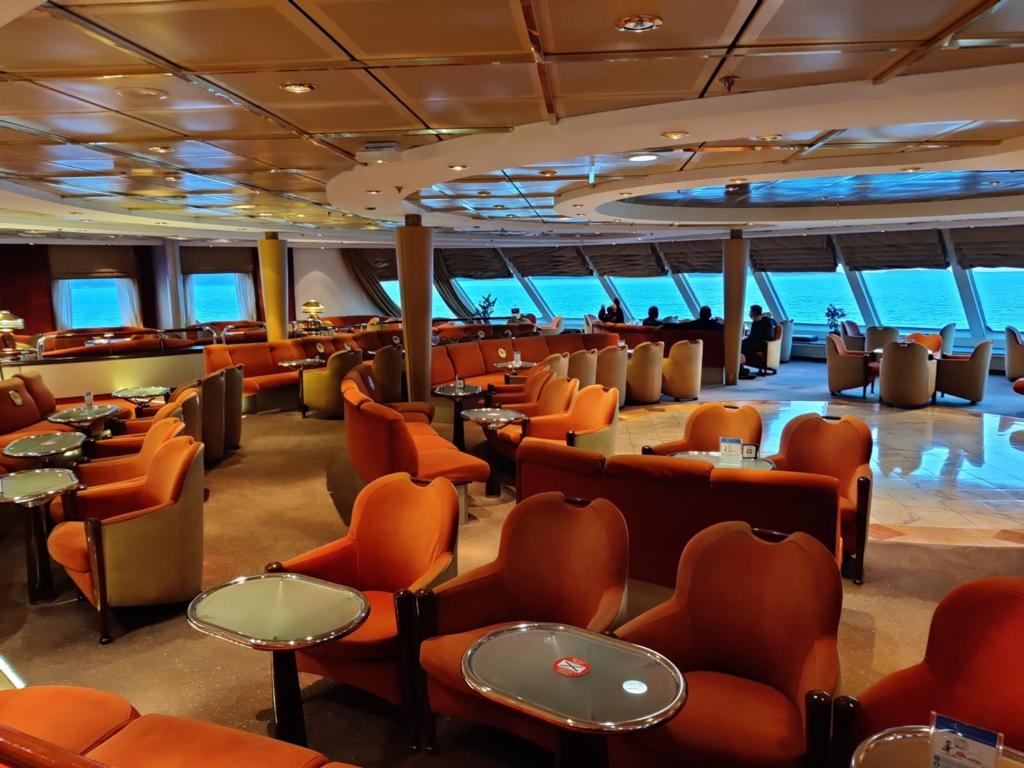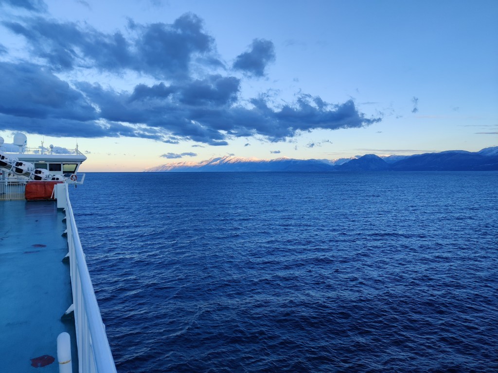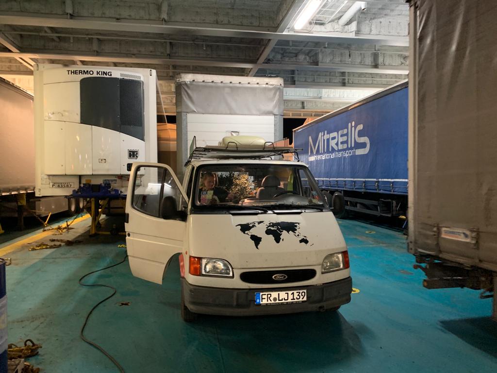 Die Anzahl der Touristen auf der Fähre konnten wir an einer Hand abzählen. Die Garagen waren allerdings mit LKWs gut gefüllt. Trotzdem war das Schiff wie ausgestorben und so hatten wir keinerlei Bedenken, uns irgendwo anzustecken.